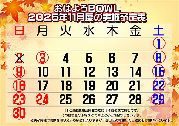 11/2(日)競技会開催のため休止させていただきます。