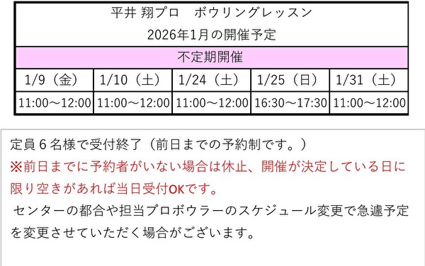 12/23平井Pの都合により一部変更になりました。ご注意下さい。。