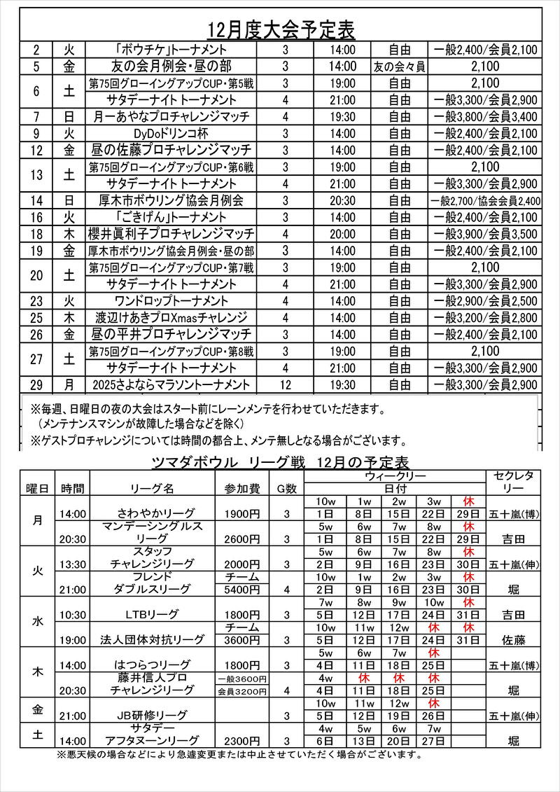 ◎2025年12月の注目大会