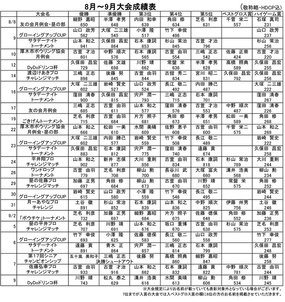★大会画像 ※当センターfbページの各アルバムへのリンクです。 8/14 渡辺けあきプロチャレンジ 8/31 月一あやなプロチャレンジマッチ 9/7 第17回シニアチャンピオンシップ