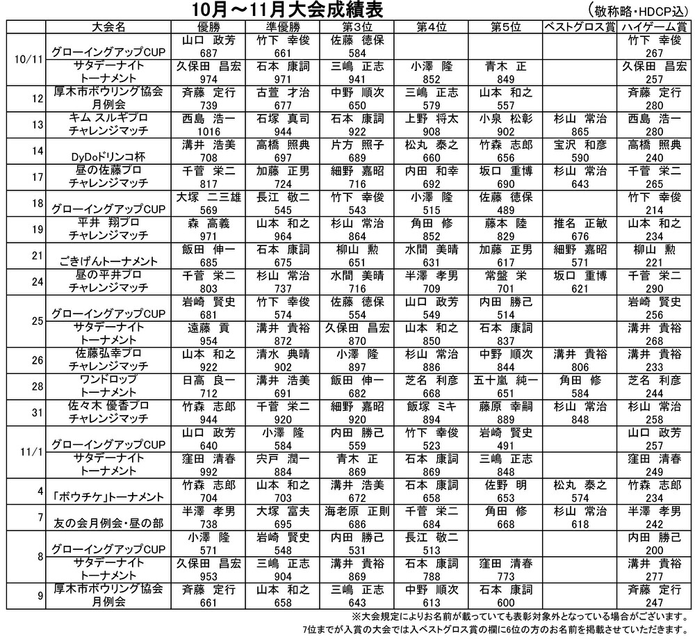 (敬称略・ハンデ込み)